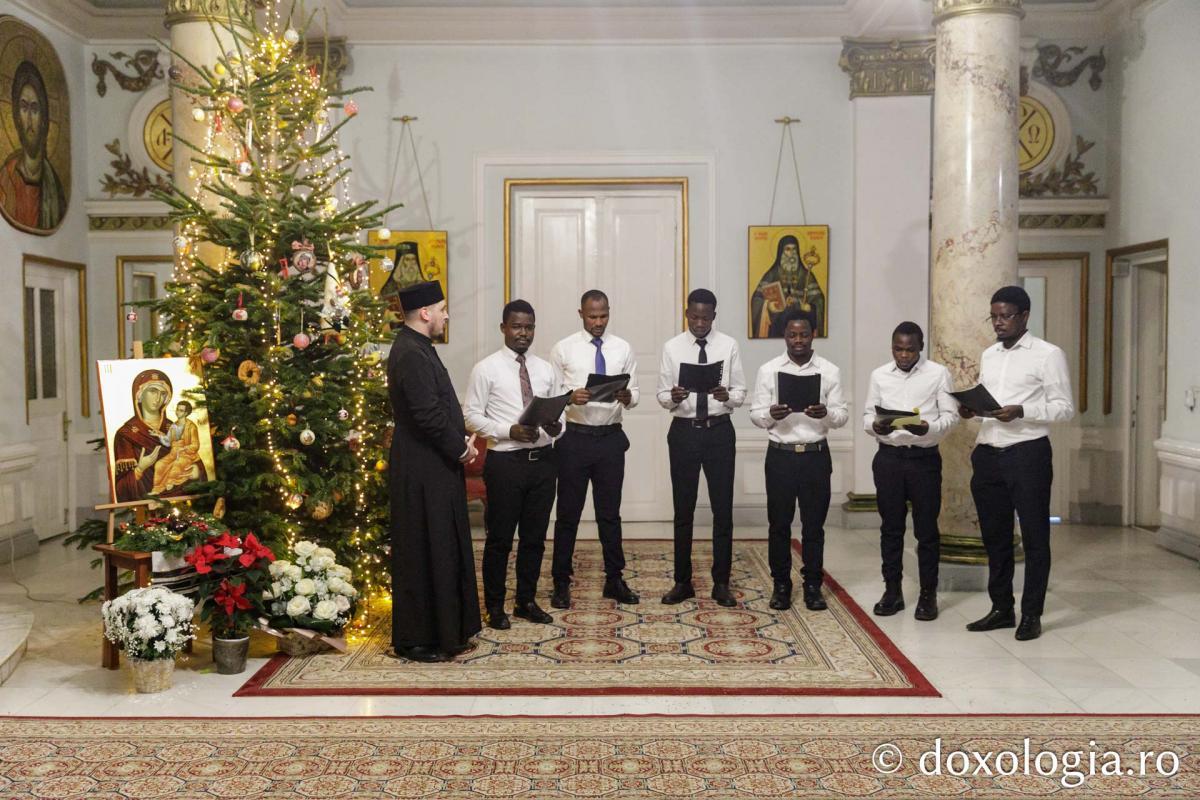 Luni, 22 decembrie 2025, la Reședința Mitropolitană din Iași, un grup de studenți africani l-a colindat pe IPS Teofan, Mitropolitul Moldovei și Bucovinei.